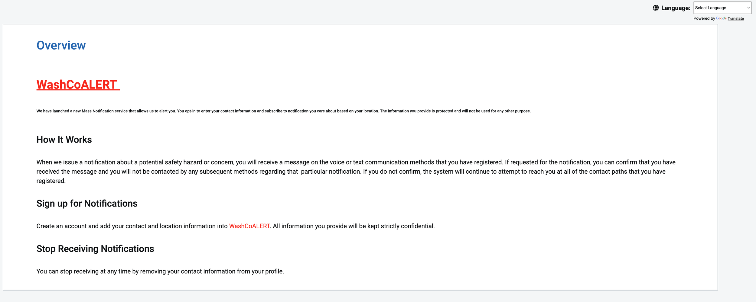 Sign up for Washington County Alerts Click here to sign up for Washington County Alerts Click here for information on FAQ’s