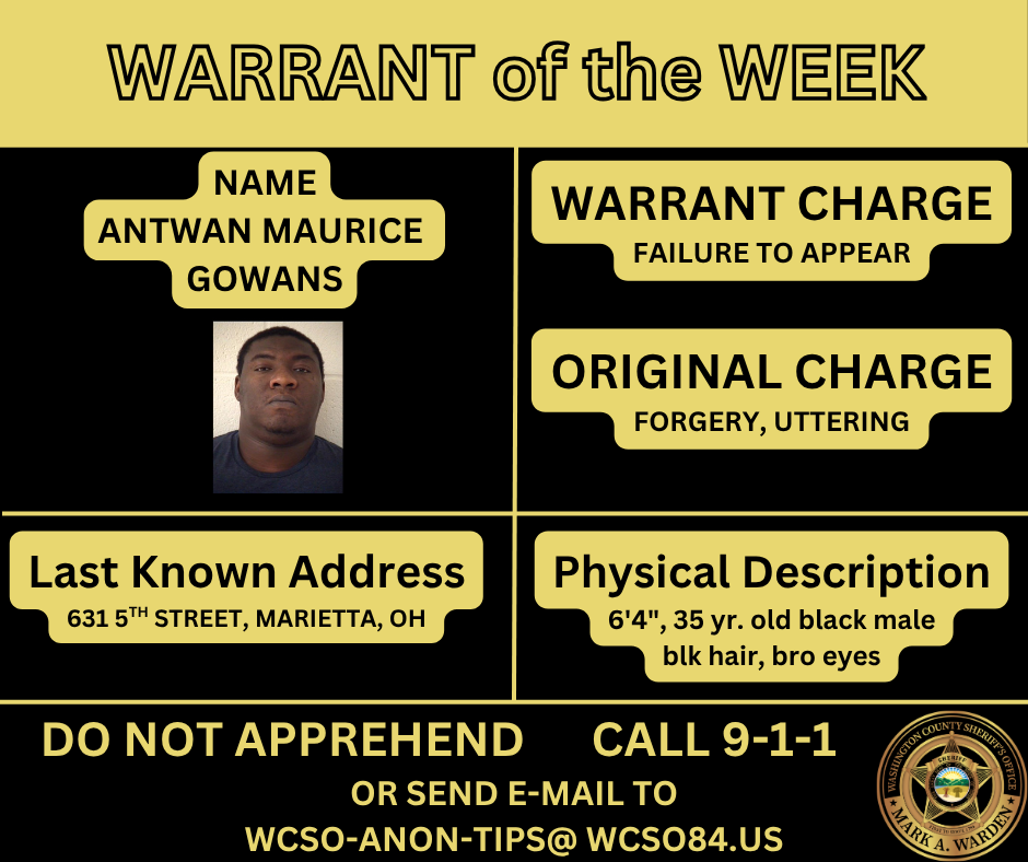 If you know the whereabouts of the wanted individual please call the Sheriff’s Office at 740-376-7070 ext. 0, or you can submit an anonymous tip.