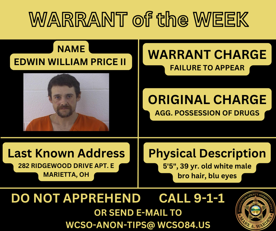 If you know the whereabouts of the wanted individual please call the Sheriff’s Office at 740-376-7070 ext. 0, or you can submit an anonymous tip.